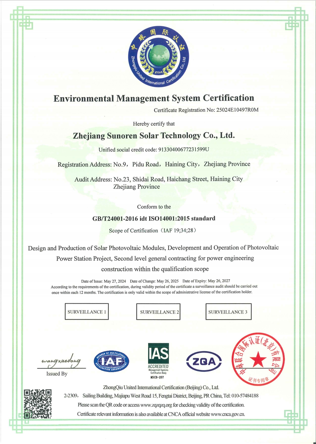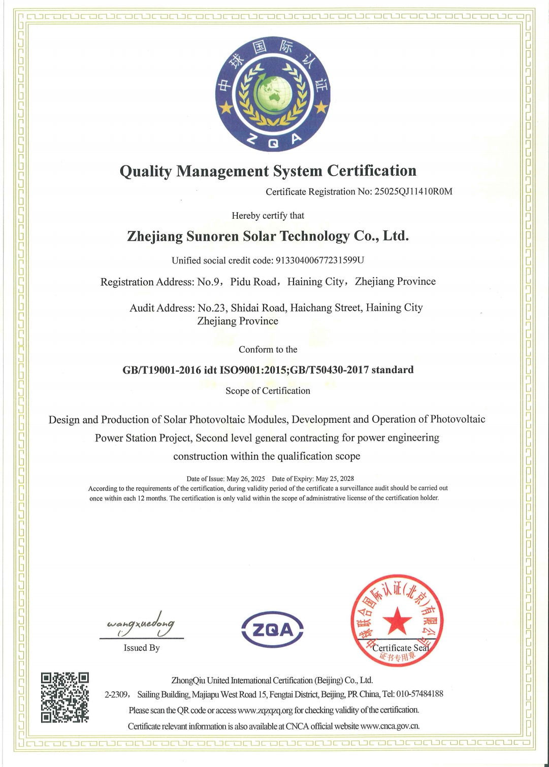 Founded in 2008, Zhejiang Sunoren Solar Technology Co., Ltd. (“Sunoren”, stock code: 603105) is a national new high-tech enterprise that focuses on investment, construction, and operation of distributed photovoltaic power stations and is dedicated to distributed solar power generation. On the basis of continuously expanding the scale of self-sustained distributed power stations and relying on existing distributed photovoltaics customer resources, the company makes steady progress in charging piles and industrial and commercial distributed energy storage business, proactively engages in the R&D and sales of off-grid and on-grid energy storage products, constantly explores new application fields of distributed energy, resolves to become the pioneer, model, and leader in pursuit of carbon peak and carbon neutrality, and contributes to the construction of a new power system based on new energy.