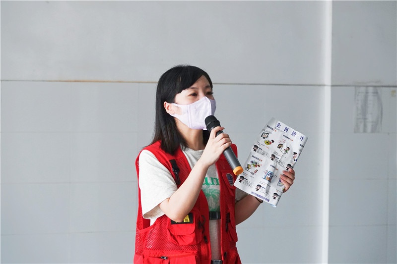 宣講員通過發放宣傳單的形式向大家普及防范電信詐騙知識,重點對網絡交友詐騙、網上兼職刷單詐騙、殺豬盤詐騙、代辦信用卡及貸款詐騙等現階段電信詐騙高發案件類型的特點及手段進行講解,并就其產生的危害以及預防辦法展開介紹。隨后,宣傳隊現場教學引導在場員工積極下載應用“國家反詐中心”APP。