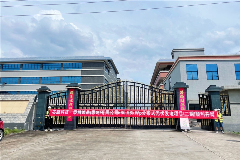 泰昌飾品(惠州)有限公司主營(yíng)塑料類(lèi)、玻璃類(lèi)、布料類(lèi)等裝飾品加工制造等。本次項(xiàng)目是芯能科技為泰昌飾品(惠州)建成的第二期分布式光伏項(xiàng)目,此前已完成一期0.8MW分布式光伏電站建設(shè)。
