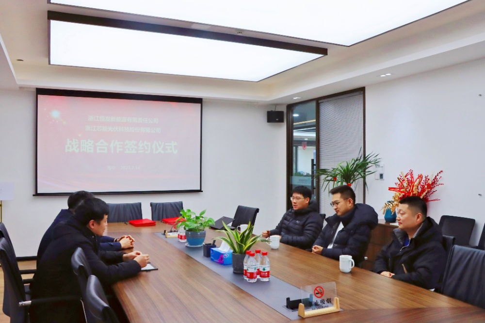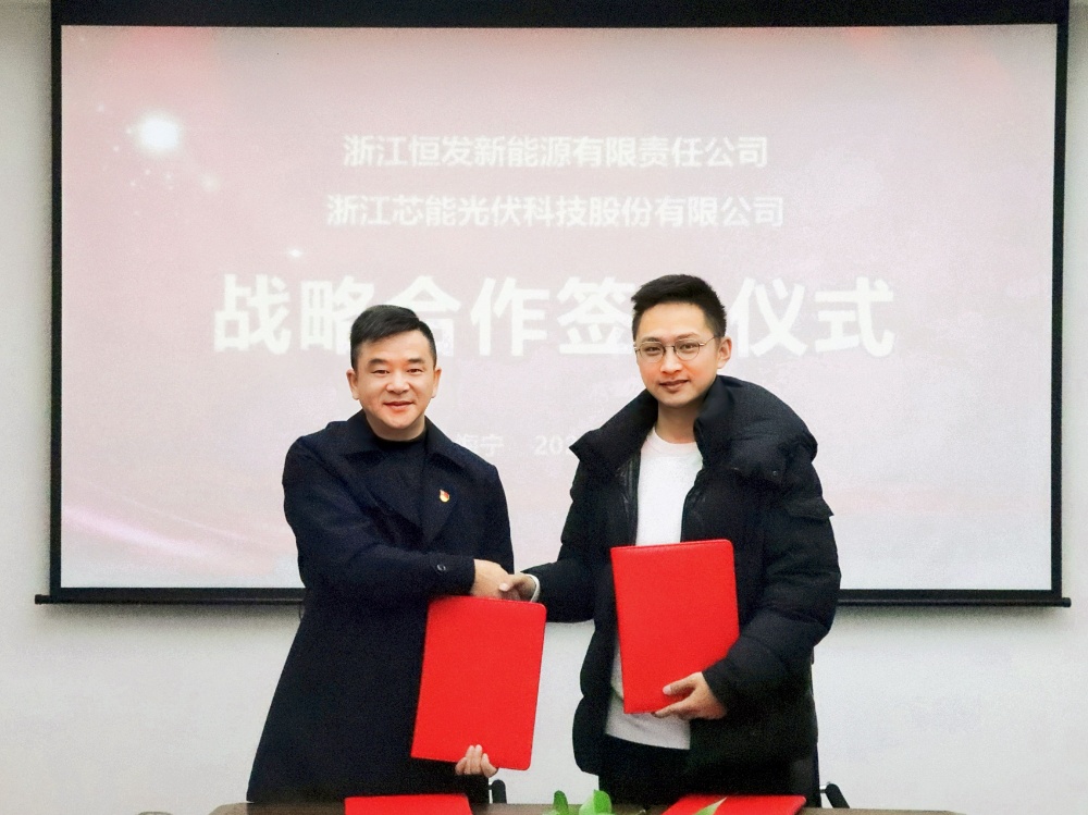 214日,芯能科技與浙江恒發新能源有限責任公司(以下簡稱恒發新能源)簽署戰略合作協議。芯能科技總經理張震豪、副總經理陳建軍,海寧市城投集團總經理助理、恒發新能源董事長董欽,恒發新能源總經理何冰、副總經理黃河等相關負責人出席簽約儀式。雙方就深化戰略合作、推動共贏發展進行了深入交流。