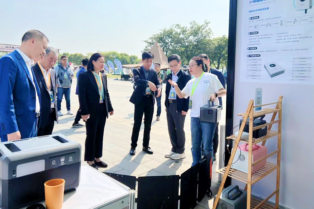 展會現(xiàn)場,芯能科技副總經(jīng)理余華穎向海寧市市長許紅蓮等領(lǐng)導(dǎo)介紹了公司儲能業(yè)務(wù)的基本情況。在了解便攜式儲能電源產(chǎn)品后,許市長對產(chǎn)品的良好品質(zhì)和親民價格表示稱贊,充分肯定了芯能科技對海寧發(fā)展所作出的貢獻(xiàn)。